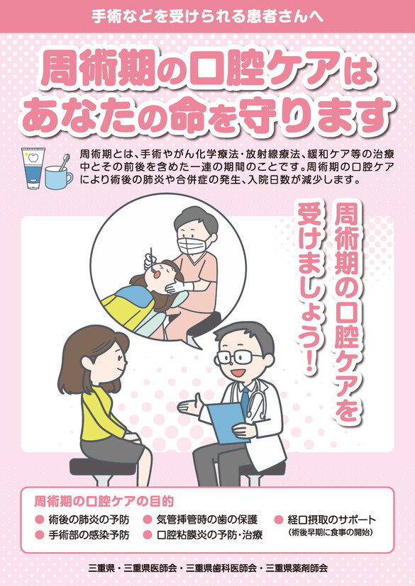 パンフレット 歯間ブラシデンタルフロスを使いましょう 妊婦歯科健診受診勧奨3つ折リーフレット 三重の8020生涯を通じたお口の健康づくり 食物を用いない基礎訓練 1歳6か月児・3歳児 歯科健診 早見マニュアル 母子健康手帳を活用しましょう 母と子の歯っぴいライフ 災害時のお口のケアに関するリーフレット 8020推進月間チラシ 成人用 喫煙と口腔の健康について 糖尿病治療を受けている患者さんへ【3つ折リーフレット】 周術期の口腔ケアはあなたの命を守ります【3つ折リーフレット】 骨粗しょう症の患者さまへ【3つ折リーフレット】 抗血栓薬を服用している患者さまへ【3つ折リーフレット】 冊子 歯科訪問診療マニュアル 口腔機能向上マニュアル フッ化物洗口マニュアル 知っておきたい歯科の健康知識 むし歯予防のためのフッ化物応用マニュアル(令和3年3月) 歯医者さんがすすめる食育 障がい者歯科健診保健指導マニュアル 地域口腔衛生活動の手引き 歯科医師の立場からの子ども虐待防止と子育て支援 説明動画(Youtube) その他 妊婦歯科健診受診勧奨ポスター 歯と口のつくりをたんけんしよう 歯と口のはたらきたんけんしよう 6歳臼歯保護育成カード 医歯薬連携で糖尿病治療をサポートします 周術期の口腔ケアはあなたの命を守ります 骨粗しょう症の患者さまへ【ポスター】 抗血栓薬を服用している患者さまへ【ポスター】